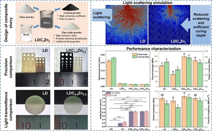 "Carbon powder limits the scattered light in a certain area through high extinction coefficient., while zinc oxide compensates for the curing depth and imparts antibacterial functionality. The synergistic effect of the two materials breaks through the bottleneck where high-transparency ceramics cannot simultaneously achieve both precision and performance," said Professor Gaoqi Wang from the School of Mechanical Engineering at University of Jinan, whose research primarily focuses on ceramic additive manufacturing technology and equipment, as well as the design and manufacturing of medical devices.