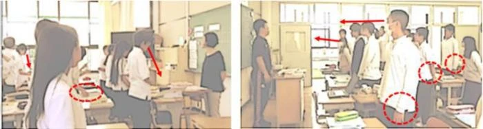 The comparative analysis revealed that Mr. Furuhata’s actions enforced tightness and reiterated the overarching importance of the school’s systems. When the bell rang, he stopped his work and stood straight. He also gave repeated, specific verbal prompts to the students to maintain the required orientation before greeting them. Whereas Ms. Kajihara did not stop her work when the bell rang, and used general prompts to initiate the greeting. This established a social tension which was a loose occasion for students during the opening phase of her lesson. This indicates that bodily orientation plays a crucial role in creating social tension.